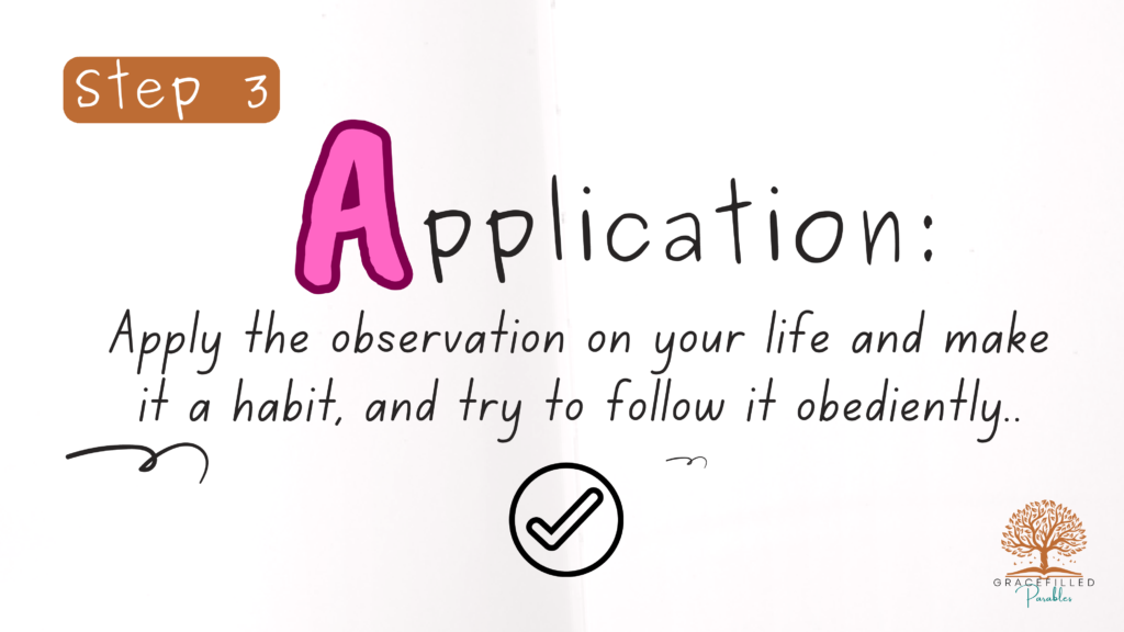 - Application :Ask God how he wants you to apply the verse to your own life.